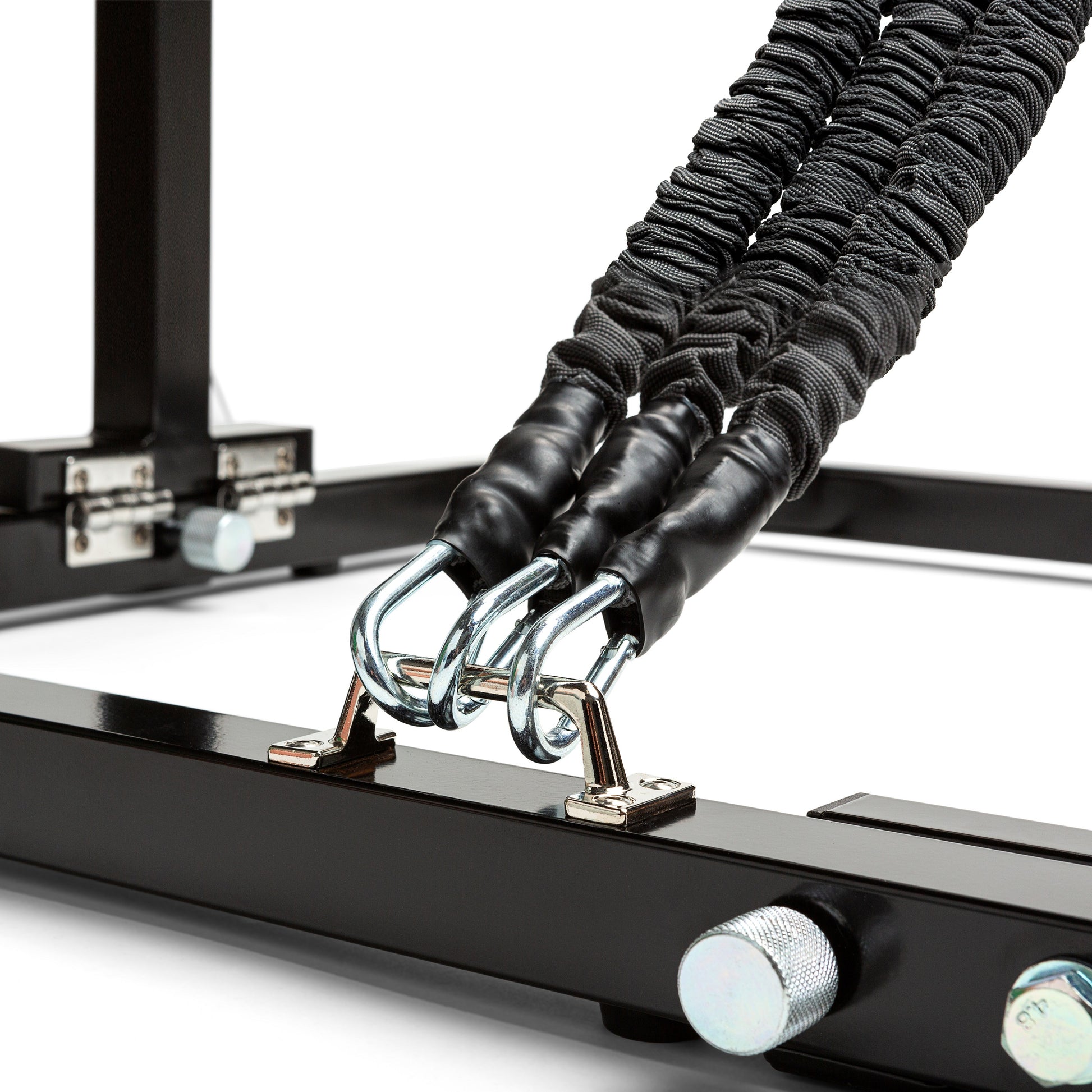 Comes with 135 lbs of resistance and can go up to 400 lbs with extra bands